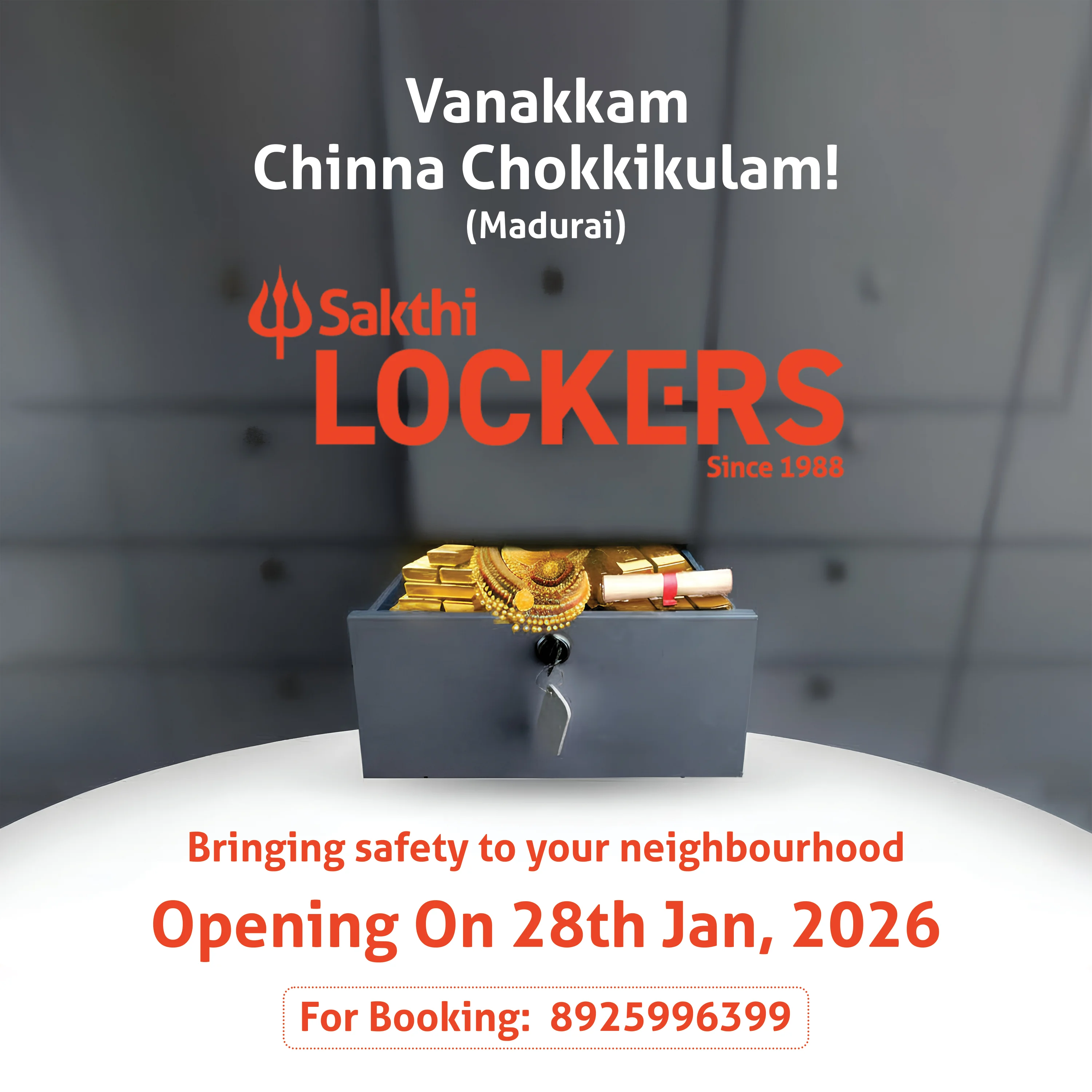 Trust worthy. Committed service. This is the brand Sakthi Financial Services has built over the last 30 years. Established in 1998, essentially as a Safe Deposit Locker company, we have been able to position ourselves as a pioneer in providing security solutions for storing personal valuables. Along the line we expanded our portfolio to offer other financial services like, Deposits, Mutual Funds and other financial services which are essential to safeguard every citizen’s financial sense of security. In a highly competitive market, we focus on elevating businesses by forging meaningful relationships with our customers. We do this by keeping our foundation of legacy, trust and values intact and these are the qualities that have helped us build a strong reputation, making us who we are today.